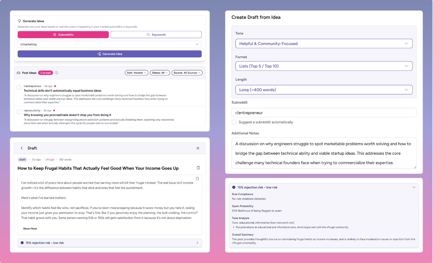 Establish a trusted human signature by generating community-aligned content and safe drafts that ensure you participate as a peer, not a marketer.
